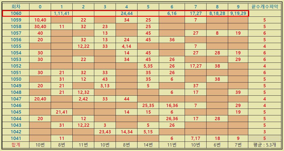 로또 결말 패턴을 보고 예상 당첨번호를 1060번 찾아보세요