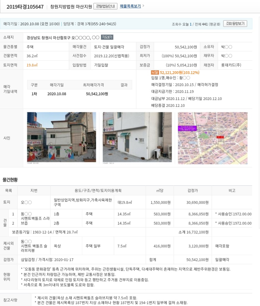 경매 당일 떨리는 마음으로 나온 결과