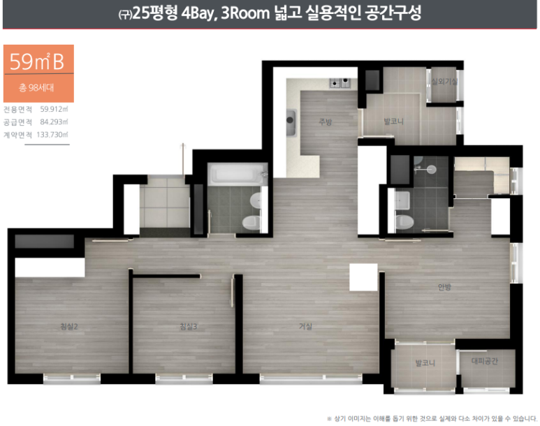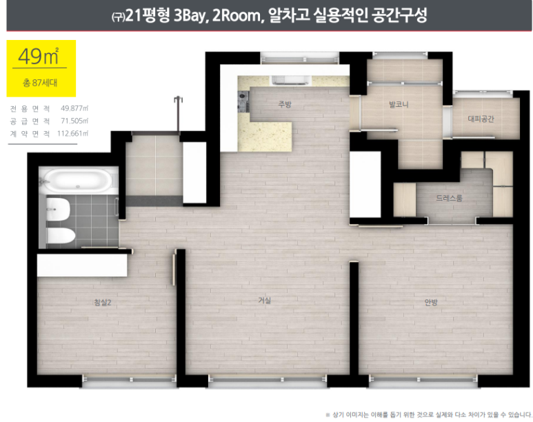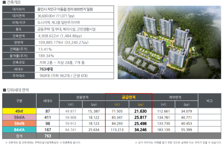 총 763세대 49㎡, 59A㎡, 58B㎡, 84㎡